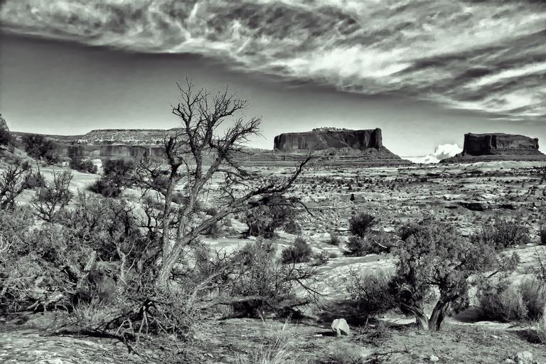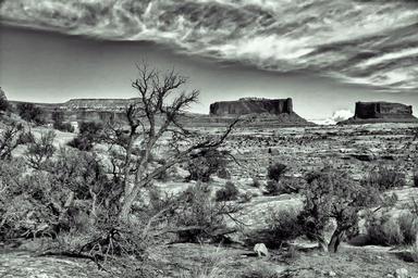Keywords: dramatic spooky desert landscape b w rock