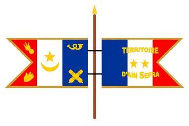 Keywords: Drapeau de l'Ain-Sefra (Algérie française).png en Ain-Sefra was the capital of a military district and a flag used there was reported by Lucien Philippe This was the vehicle flag or rather pennant of General Laperrine It was swallowtailed and with inscriptions was different on its obverse and reverse The reverse contained the characteristic symbol of Algeria crescent moon and star on the center and cannons trumpet hand of Fatima and bomb on the sides http //flagspot net/flags/dz-frais html http //flagspot net/flags/dz-frais html fr Ain-Sefra a été la capitale d'un district militaire et un drapeau qui y fut utilisé a été rapporté par Lucien Philippe C'était le drapeau du véhicule ou plutôt le fanion du général Laperrine Il était taillé en queue d'aronde et avec ses inscriptions était différent sur son avers et son revers Le revers portait le symbole caractéristique de l'Algérie croissant de lune et étoile sur le centre et les canons la trompette la main de Fatima et la bombe sur les côtés http //flagspot net/flags/dz-frais html http //flagspot net/flags/dz-frais html own Picaballo 01/07/2011 Aïn Sefra Fanion of France Flags of Algeria under French rule Cc-zero |