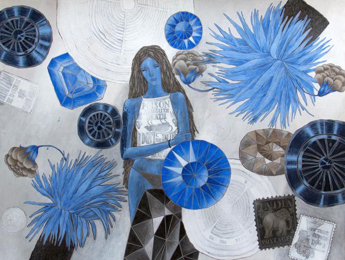 Keywords: acrylic on paper. 18x24″ inches. contemporary art painting acrylic color blue illustration quote