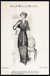 Keywords: Drecoll Model of Black Lace. Paris Spring Season 1913.jpg en Fashion Design by Christoph Drecoll 1851 “1939 White Worth satin Drecoll Model of Black Lace veiled with white Callot chiffon and covered with black Chantilly lace and two flounces Shoulder and panel of net lace with gold kimono sleeve of lace to match Skirt belt and sash Bottom of skirt of black Worth satin Cocktail dress by couturier Baron Christoph von Drecoll Published by Haas brothers 2013-03-08 18 25 57 http //world4 eu/tag/drecoll/ Christop Drecoll 1851-1939 PD-Art Uploaded with UploadWizard Christoph Drecoll Fashion in 1913 History of fashion in Paris |