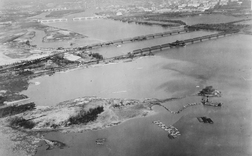 MAKE A MEME View Large Image Dredging operations in Potomac River - 1930.jpg en Dredging operations in the Potomac River in Washington D C in the United States in 1930 The double-bridge in the center is the Highway Bridge later replaced and today known as the 14th ...