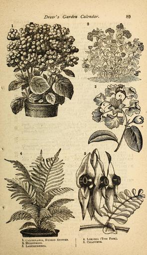 Keywords: Dreer's garden calendar (16448687533).jpg Dreet's Garden Calendar <br> 89 <br> 1 Calceolaria Hybrid Spotted <br> 2 Heliotrope <br> 3 Lagerstr emia <br> 4 Lom/ria Tree Fern <br> 5 Clia 'thus 43928853 150178 78655 Page 89 Text http //www biodiversitylibrary org/page/43928853 1877 10 5962/bhl title 78655 Henry A Dreer Firm ; Henry G Gilbert Nursery and Seed Trade Catalog Collection NameFound Calceolaria NameConfirmed Calceolaria EOLID 72303 NameBankID 2665046 Biodiversity Heritage Library Dreer's garden calendar 1877 Catalogs Flowers Gardening Henry A Dreer Firm Nursery stock Seeds U S Department of Agriculture National Agricultural Library bhl page 43928853 dc identifier http //biodiversitylibrary org/page/43928853 bhlGardenStories henry a dreer firm u s department of agriculture national agricultural library bhlgardenstories Information field Flickr posted date ISOdate 2015-04-07 Check categories 2015 August 23 CC-BY-2 0 BioDivLibrary https //flickr com/photos/61021753 N02/16448687533 2015-08-23 20 52 30 cc-by-2 0 PD-old-70-1923 1877 books Dreer's garden calendar Photos uploaded from Flickr by Fæ using a script |