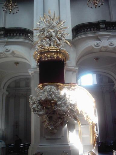 Keywords: Dresden Kathedrale St. Trinitatis Kanzel.JPG en Pulpit of the catholic Cathedral of the Holy Trinity Dresden de Kanzel der katholischen Kathedrale St Trinitatis Hofkirche Dresden own Zairon 2006-04 Pulpit of the Hofkirche Dresden Cc-zero