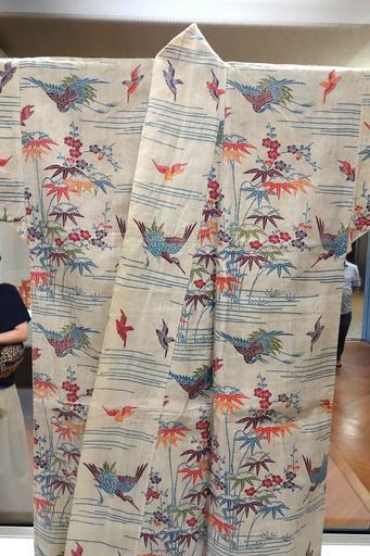 Keywords: Dress in Bingata Stencil Dyeing, Okinawa Main Island, Second Sho Dynasty, Ryukyu Kingdom, 19th century, view 2, bamboo, crane, and plum design on white ramie ground, hemp - Tokyo National Museum - DSC05389.JPG en Exhibit in the Tokyo National Museum Tokyo Japan This artwork is old enough so that it is in the public domain 2013-09-02 22 23 12 own Daderot 100px PD-old-70 cc-zero Uploaded with UploadWizard Bingata Art of Okinawa in the Tokyo National Museum Bamboo designs Cranes in Japanese art Plum blossoms in art |