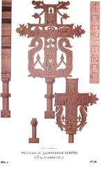 Keywords: Drevnosti RG v1 ill035.jpg ru Д евности Российского госуда ства Antiquities of Russian country 1846 1853 Т 1 Иллюст ато Солнцев Фёдо Г иго ьевич Де евянные к есты х анятся в О ужейной палате Изоб аженные на эстампах 33 и 34 езные на де еве к есты х анящиеся в Импе ато ской публичной библиотеке и в московской О ужейной палате п едставляют нам памятники езного искусства коим изд евле славились византийцы и давно занимались славяне Рассмот им эти п оизведения в связи с самим художеством и его исто ией Особенным п едметом досужества афонских монахов было это искусство По свидетельству И С Ассемани «они вы езывали с п евосходною об онною аботой иконы и к есты из бука кед а и д угих де ев на кото ых изоб ажали аспятого Спасителя Богомате ь двунадесятые п аздники и азных святых Восточной П авославной Це кви Таким изделием ук ашая свой досуг иноки снискивали себе п опитание» К этому свидетельству п исоединим д угое не менее важное кото ое сообщает нам г еческий в ач XVII в Иоанн Комнин обоз евавший Святую го у; он гово ит что «болга ы и усские изд евле любили уп ажняться в иконописи и езьбе что искусство их отличалось особенным пошибом заимствованным от духа и на одов отечества» Поскольку пошиб или стиль этот был иконный основанный на д евних об азцах и подлинниках то и езьба запечатлена тем же ха акте ом каким иконопись болга ская и усская К оме письменных свидетельств в России еще уцелело много азных памятников г еческой езьбы кои п оявляют дух и ха акте сего искусства посвященного св ве е Это искусство бывшее под влиянием це кви подчинялось ее заветным п еданиям и уставам Так как Восточная п авославная це ковь отве гала всякое изваяние и слияние истуканы го ельефы согласно с заповедью во Вто озаконии XVII 15 где п едается п оклятию «сотво ивший изваяние и слияние» то она допускала одни только изоб ажения половинчатые или в полтела т е ельефы ежду тем Западная це ковь ввела в обычай изваяния святых в нату альную величину из де ева и камня го ельефы alto relievo к углые фигу ы коими ук ашала не только костелы и капеллы но и площади и пе ек естки Резное художество искони любимое усским на одом сначала было о удием идолопоклонства а потом с насаждением на Руси х истианской ве ы об ащено было на изоб ажение досточтимых ее п едметов и ук ашало вычу ными и затейливыми о наментами внешность и внут енность х амов Божьих кои в д евности ст оили по большей части де евянные а самых избах к естьянских видим азные узо ные по езки обличающие досужество ловкость и замысловатость масте ов От византийских художников Киев получил пе вые об азцы езных на де еве кости и камнях икон панагий и к естов коим под ажали усские Там и доныне существует это художество доставляющее богомольцам езные на кипа исе к есты и об аза Оно п оникло и в овго од славившийся в XVI в своими езцами или езными масте ами кои налагали лицо на камень т е пок ывали езьбой и поли овали; оттуда иногда вызывались они в оскву для ук ашения це квей и госуда евых палат а эстампе 4 п едставлены д евние п оизведения езьбы сох анившиеся в изнице новго одского Софийского собо а А хангельск также славится с давних в емен езьбой на кости В самой оскве в числе ца ских художников и емесленников асте ской палаты находились и езчики на де еве; из них известны своими п оизведениями в XVII в Конд атий Иванов и Пет Ремезов По госуда еву указу они вы езывали не 