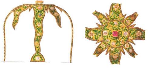 | Keywords: Drevnosti RG v1 ill068a.jpg ru Д евности Российского госуда ства Antiquities of Russian country 1846 1853 Т 1 Иллюст ато Солнцев Фёдо Г иго ьевич Звездица та елочки золотые и костяная ложечка мит ополита Пет а В изнице московского Успенского собо а звездица пок ывающая дискос богата по металлу и по ук ашениям финифтью и д агоценными камнями Состоя из четы ех луков между коими четы е луча она об азует восьмиконечную звезду подобие небесного светила путеводившего волхвов в Вифлеем а ней читаем следующую надпись лtта /--зч`г 1585 мtсmца їюлїm въ и` день сдtлана бысть сїа звtзда въ собо нuю иb апостольскuю це ковь П ечистыm Бого одицы честнагw иb славнагw Еm Успенїm п и благовt номъ Ца t иb Великомъ Кнmзt Fеодо t Icоанновичt повелtнїемъ Господина П еосвmщеннаго Дїонисїm ит ополїта всеm Росїи К ней п инадлежат два золотых блюдца а одном наведен финифтью восьмиконечный к ест на Голгофе с те новым венцом на с едок естии и с надписью по к аям К естu твоемu покланmемсm Влыдыко и п оч а на д угом Воплощение в виде Знамения Богомате и и с надписью вок уг Все оуrпованїе мое къ Тебt возлагаю ати Божїm сох ани мm во Своемъ си к овt К ая обоих блюдец усажены изум уами и яхонтами в гнездах аконец на этом же исунке п едставлена ложка из ыбьей кости п инадлежавшая по п еданию Пе восвятителю московскому Пет у но в собо ной описи 1628 г она названа «лжицею св Ионы ит ополита» В собо ной же описи 1627 г упомянуты «ложка костяная на кольце обложена се еб ом лжичка и во во ка низана жемчугом» По-видимому лжица сия п инадлежит к келейной а не к це ковной утва и 1846 1853 http //www runiverse ru/bookreader/book403605/ page/61/mode/1up Солнцев Фёдо Г иго ьевич PD-Art Antiquities of Russian country - Volume I Files uploaded by Shakko from various sources Asterisk liturgy |