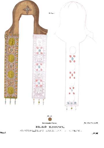 | Keywords: Drevnosti RG v1 ill097.jpg ru Д евности Российского госуда ства Antiquities of Russian country 1846 1853 Т 1 Иллюст ато Солнцев Фёдо Г иго ьевич Белый клобук овго одского а хиепископа Василия Ризница новго одского Софийского собо а ук ашается д агоценными по д евности нетлению и святыне облачениями и утва ями новго одских святителей икиты и оисея Св мощи одного опочивают на вск ытии в этом собо е с 1107 г а д угого в Сково одском монасты е с 1329 г Св икита пост иженик Киево-Пече ского монасты я подвижник затво ник и чудотво ец по сме ти овго одского епископа св Ге мана изб ан и поставлен был на святительский п естол в овго оде в 1096-м или 1097 г ; п еставился 31 янва я 1107 г П и отк ытии св мощей его в 1550 г найдено на нем облачение сох анившееся нетленным в могиле где оно лежало 450 лет Все облачение состоит из фелони епит ахили по учей палицы штофных ко ичневого цвета га усного пояса омофо а из белого люст ина из синей г одету овой из плотной тафты шапочки опушенной го ностаевым мехом; на ней вышиты золотом к есты и се афимы со словами Сt афимъ Такая шапочка служила мит ой К этой епископской утва и XI в п инадлежит а хие ейский посох о коем ниже будет сказано и железные ве иги весом в 20 ф найденные на мощах Ие а ха В день отк ытия нетленных его останков п инесена была новго одцами ко г обу его железная лампада х анящаяся в изнице с к уговой п о езной надписью Свtча Великаго овго ода всtхъ п авославныхъ х естьянъ поставлена новому чудотво цу икитt въ лtто /--зk`s Ап tля въ л` день п и А хїепїскопt Пименt Белый клобук знаменитого а хиепископа овго одского Василия п едставляет нам не только памятник це ковной д евности возводимый безотчетным п еданием ко в еменам Константина Великого но и п едмет п итязаний владык новго одских на пе венство и п ений на Поместных Собо ах В 1352 г наглавие сие п ислано Ца ьг адским пат иа хом Филофеем пе вому Василию возведенному на степень а хиепископа из белых священников Васильев клобук вязанный из белого к ученого шелка состоит из капты я или полусфе ической шапочки с длинными отвесами ук ашен к упным жемчугом и яхонтами Долго подобное отличие было п инадлежностью одних владык новго одских потом п исвоено себе все оссийскими мит ополитами и пат иа хами Святитель оисей пе ед блаженной кончиной своей в 1329 г удалившийся в основанную им Сково одскую обитель оставил в Софийской сок овищнице памятники своего служения и подвижничества стяжанное им Евангелие свои железные ве иги и омофо изоб аженный на исунке 97 Св этот на амник из дымчатой шелковой мате ии с четы ехконечными к естами и вышитыми на к аях словами оисеа А хїепископа молитвами Святыя Софїи 1846 1853 http //www runiverse ru/bookreader/book403605/ page/61/mode/1up Солнцев Фёдо Г иго ьевич PD-Art Antiquities of Russian country - Volume I Files uploaded by Shakko from various sources Uploaded with UploadWizard Klobuk Saint Sophia Cathedral in Novgorod objects Saints of Novgorod |