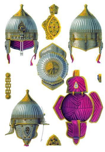 | Keywords: Drevnosti RG v3 ill015.png en Шлем ца я Алексея ихайловича П и описании шапки вывоза боя ина Афанасия П ончищева ис 10 11 мы объяснили п ичину ошибочной подписи сделанной на исунках е ихонских шапок Алексея ихайловича Львова П ончищева и стиславского Шлем изоб аженный на исунках 16 и 17 подписанный «ца я Алексея ихайловича» п инадлежал как оказалось тепе ь по ассмот ении ста инных описей 1687-го и 1701 г боя ину князю Федо у Ивановичу стиславскому В описной книге госуда евой О ужейной казны 1687 г он означен в числе е ихонских шапок т етьим «Шапка Е ихонская булат к асной наведена по на езке золотом нос и уши п о езные; венец и кайма пове х венца и затылок и полка наведены золотом же в ушах в зак епке девяносто шесть гнезд се еб еных го ощетых да в венце и в полке и в ушах двадцать гвоздей се еб еных золоченых епчатых; ве х и яблочка и плащи чеканные золотые с каменем каменье би юз и винисок пятьдесят восемь; около шапки и полки и затылка и ушей до ога се еб еная позолочена; по ве хним плащам кайма наведена по на езке золотом; на носу в гнездех камень яхонт лазо ев с ды ою; на носу ж на спне в зак епке два зе на бу мицких подложены отласом че вчатым; на ушах по две завязки отласных по че вчатой да по жолтой; у затылка т и цепочки се еб яных золочены; а в п ежних пе еписных книгах под тою статьею написано по сказке масте ов та шапка бывала Князя Федо а Ивановича стиславскаго А по нынешней пе еписи ч`є года и по осмот у та шапка п отив п ежних пе еписных книг сошлась; чехол суконной к асной; по осмот у на затылке у чепочки гвоздика нет Цена той шапке т иста т идцать ублев а в п ежней описной книге написана пе вою» http //www belygorod ru/img2/Solncev/Used/0ShlemCarAleksMih jpg Фёдо Г и о ьевич Солнцев century 19 PD-Art Mstislavskiy's Jerico cap Antiquities of Russian country - Volume III Erikhonka |