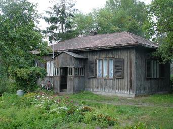 Keywords: Drewniany domek, Rzeki Wielkie.jpg pl Drewniany domek w pobliżu mostu i fabryki Rzeki Wielkie own Zureks 2009 Cc-zero Rzeki Wielkie