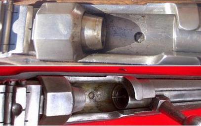 Keywords: Dreyse barrel-bolt.JPG en Dreyse M1841 <p>U Barrel-end <p>L Bolt face with Needle Own Amenhtp 2009-04-25 none Dreyse needle-gun