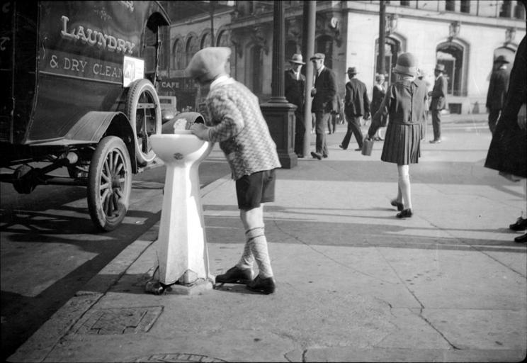 Keywords: blackandwhite monochrome sidewalk road black and white Drinking fountain on Hastings Street VPL Accession Number: 19147 Date: 192- Photographer/Studio: Timms, Philip Content: Young boy at an outdoor drinking fountain on Hastings Street. Several pedestrians are on the sidewalk and a laundry truck is parked beside the fountain. Topic: Streets Children Fountains More information on our historical photograph collection: www.vpl.ca/find/cat/C393/ Drinking fountain on Hastings Street VPL Accession Number: 19147 Date: 192- Photographer/Studio: Timms, Philip Content: Young boy at an outdoor drinking fountain on Hastings Street. Several pedestrians are on the sidewalk and a laundry truck is parked beside the fountain. Topic: Streets Children Fountains More information on our historical photograph collection: www.vpl.ca/find/cat/C393/ |