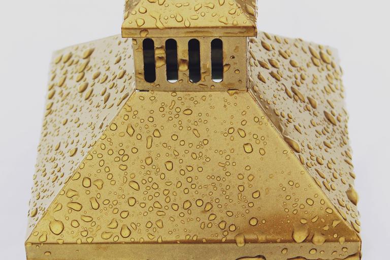 Keywords: drip drop of water water rain wet close run off raindrop beaded dewdrop shimmer shiny droplets moisture lantern roof gold golden