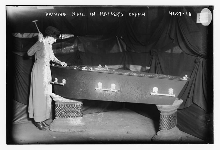 | Keywords: Driving nail in Kaiser's coffin (LOC) (26682642963).jpg Bain News Service publisher Driving nail in Kaiser's coffin between ca 1915 and ca 1920 1 negative glass ; 5 x 7 in or smaller Notes Title from unverified data provided by the Bain News Service on the negatives or caption cards Forms part of George Grantham Bain Collection Library of Congress Format Glass negatives Rights Info No known restrictions on publication Repository Library of Congress Prints and Photographs Division Washington D C 20540 USA http //hdl loc gov/loc pnp/pp print hdl loc gov/loc pnp/pp print General information about the Bain Collection is available at http //hdl loc gov/loc pnp/pp ggbain hdl loc gov/loc pnp/pp ggbain Higher resolution image is available Persistent URL http //hdl loc gov/loc pnp/ggbain 26913 hdl loc gov/loc pnp/ggbain 26913 Call Number LC-B2- 4607-18 https //www flickr com/photos/library_of_congress/26682642963/ Driving nail in Kaiser's coffin LOC LOC-image ggbain 26913 https //www flickr com/people/8623220 N02 The Library of Congress http //www loc gov/rr/print/195_copr html noknown The Library of Congress Flickr Commons PD-Bain The Library of Congress https //flickr com/photos/8623220 N02/26682642963 2016-09-08 05 32 04 pd Uncategorized 2016 December 20 |