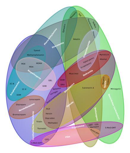 | Keywords: Drogenklassifikation.svg validSVG de Klassifizierung geläufiger Drogen nach Stoffklasse Wirkung und Herkunft en Classification of commonly used drugs by class mode of action and source own LordToran 2010-12-19 thumb left 120px PNG version Cc-zero Psychoactive drugs classification diagrams and charts Created with Inkscape |