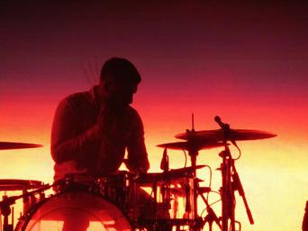 Keywords: drummer battery concert band music dishes drumsticks man shadow profile silhouette