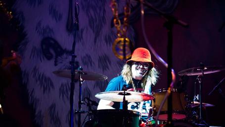 Keywords: drummer live music stage music live band concert musician sound rhythm musical rock show play entertainment performance male lights cymbal drum head
