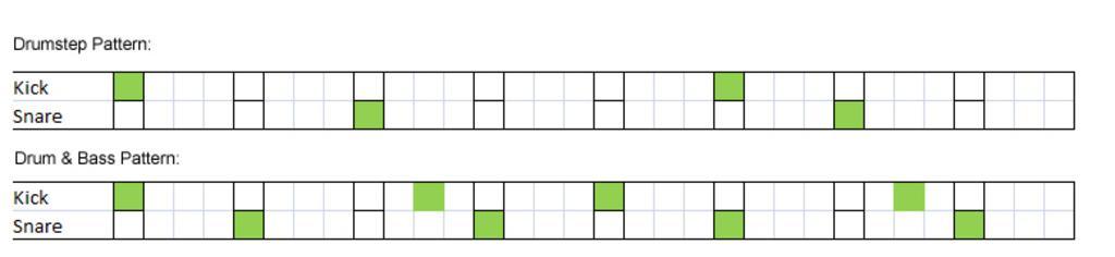 Keywords: Drumstep pattern comparison.jpg en This picture compares drum patterns of drumstep and drumnbass own SchwansMans 2009-01-11 User page image Drum patterns