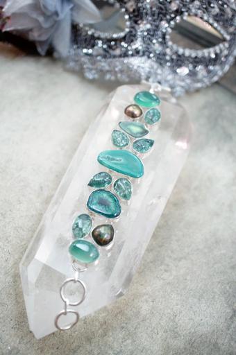 Keywords: druzy drusy solar quartz quartz bracelet stone gem gemstone crystal point jewelry jewel jewellery fashion blue green teal mask silver sterling sterling silver