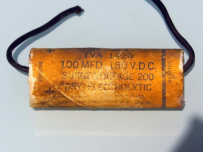Keywords: Dry Electrolytic capacitor, pic5.JPG Photographed at Radio Relay Station Former USAF microwave relay station ACE-High system at Lefkada Greece own 2014-06-05 10 21 37 Alf van Beem CC-Zero Electrolytic capacitors