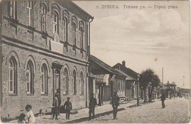 | Keywords: Drysa, Hiejženaŭskaja. Дрыса, Гейжэнаўская (1912).jpg Д ыса Drysa вуліца Гейжэнаўская vulica Hiejženaŭskaja Вучэльня a street in Verkhnedvinsk Belarus 1 www delcampe net <br> 2 Целеш В Га ады Бела усі на ста ых паштоўках енск Бела усь 2001 author < 1914 PD-old-100 History of Drysa |