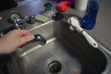 Keywords: water spraying spray sink dish dishes chore clean soap dirty cleaning housekeeping