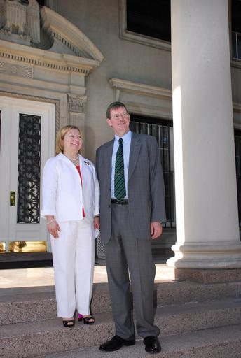 | Keywords: nelson press Ambassador and Mrs. Nelson pose for media photographers following a press conference at the U.S. Ambassador's Official Residence in Montevideo. [U.S. Embassy photo by Vince Alongi / Copyright info] Ambassador and Mrs. Nelson pose for media photographers following a press conference at the U.S. Ambassador's Official Residence in Montevideo. [U.S. Embassy photo by Vince Alongi / Copyright info] | ||||