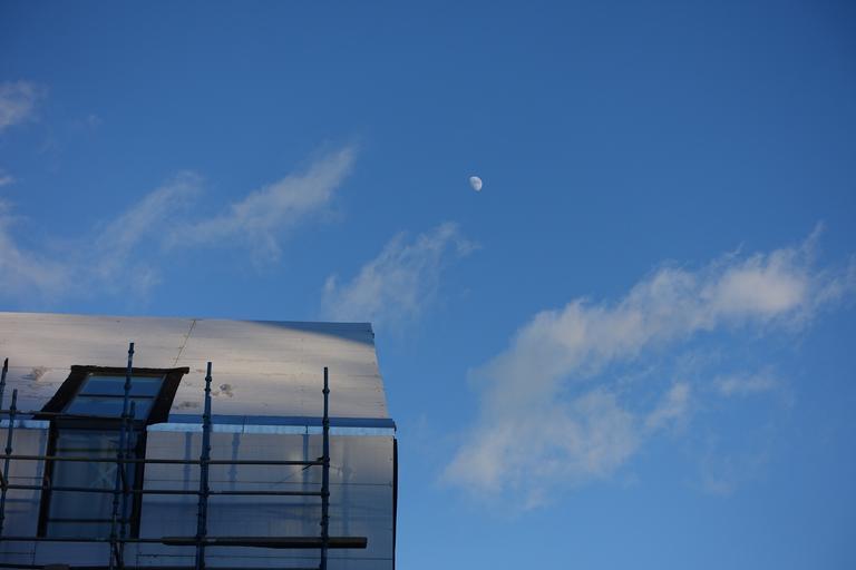 Keywords: moon sky clouds building scaffolding construction outdoor