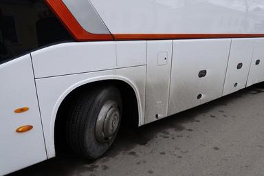 Keywords: bus white_bus whitebus geometry orange orange_stripe orangestripe orange_on_gray orangeongray gray tire