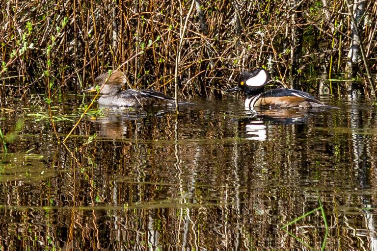 Keywords: hooded merganser hoodedmerganser duck hen drake wildlife outdoor serene Hooded Mergansers, hen and drake. Hooded Mergansers, hen and drake.
