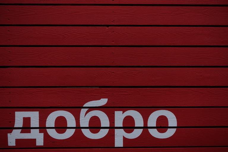 Keywords: red white stripes добро rather_minimal ratherminimal text sign outdoor abstract photo border texture street sign writing minimalism