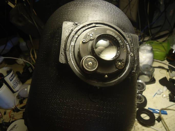 Keywords: lente 135mm com obturador central presa em tampa de cano 75mm encaixada por dentro de uma seção de rosca 3" cortada de uma curva de cano 3", permite uns 3cm de ajuste de foco; a câmera foi feita para trabalhar na hiperfocal, a rosca serve apenas para ajuste, não é para ficar focalizando....