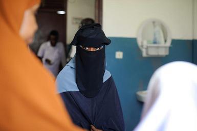 Keywords: indoor A university student in Mogadishu, Somalia, talks to Dr. Lul Mahamud Mohamed before having an HIV test at Banadir hospital on December 1. The hospital, in recognition of World Aids Day, organized HIV tests for many of the city's university students as part of its drive to destigmatize the disease in the country. AMISOM Photo / Tobin Jones A university student in Mogadishu, Somalia, talks to Dr. Lul Mahamud Mohamed before having an HIV test at Banadir hospital on December 1. The hospital, in recognition of World Aids Day, organized HIV tests for many of the city's university students as part of its drive to destigmatize the disease in the country. AMISOM Photo / Tobin Jones
