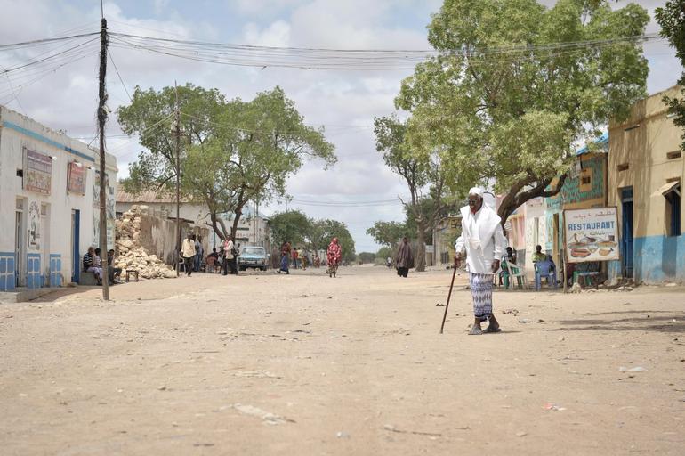Keywords: outdoor road An elderly Somali man crosses the road in Bulo Burte, Somalia, on August 12. AMISOM's Humanitarian Unit today conducted an assesment of Bulo Burte town in the Hiraan region of Somalia. The team spoke to several civil society groups while on the ground and visited various areas around the town. AMISOM Photo / Tobin Jones An elderly Somali man crosses the road in Bulo Burte, Somalia, on August 12. AMISOM's Humanitarian Unit today conducted an assesment of Bulo Burte town in the Hiraan region of Somalia. The team spoke to several civil society groups while on the ground and visited various areas around the town. AMISOM Photo / Tobin Jones |