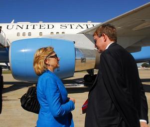 | Keywords: visdip secretary hillary clinton secretaryhillaryclinton josé mujica josémujica ambassador nelson ambassadornelson uruguay inauguration 2010 inauguration2010 Secretary Hillary Clinton speaks with U.S. Ambassador to Uruguay David D. Nelson, moments before her departure from Montevideo. Next stop: Buenos Aires. [State Department photo by Vince Alongi / Public Domain] Secretary Hillary Clinton speaks with U.S. Ambassador to Uruguay David D. Nelson, moments before her departure from Montevideo. Next stop: Buenos Aires. [State Department photo by Vince Alongi / Public Domain] |
