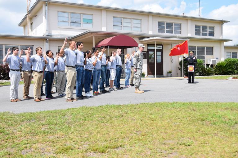 | Keywords: outdoor Brigadier Jim Blackburn, Task Force Marne commander, 3rd ID, gives the oath of enlistment to 29 young recruits of the Savannah Army Recruiting Company on the airfield, May 15. Brigadier Jim Blackburn, Task Force Marne commander, 3rd ID, gives the oath of enlistment to 29 young recruits of the Savannah Army Recruiting Company on the airfield, May 15. |