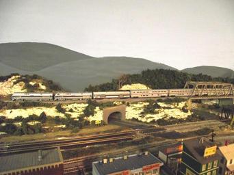 Keywords: n scale model railroad nscalemodelrailroad outdoor Taking a break from the city modelling. Amtrak crossing the Schuylkill River. Locomotives and baggage car are from Kato. The four coaches are Con-Cor. One I blanked out some windows and converted into a transition car. Added weight to the cars and added decals to update to Amtrak Phase IV Superliner stripes. Taking a break from the city modelling. Amtrak crossing the Schuylkill River. Locomotives and baggage car are from Kato. The four coaches are Con-Cor. One I blanked out some windows and converted into a transition car. Added weight to the cars and added decals to update to Amtrak Phase IV Superliner stripes. |