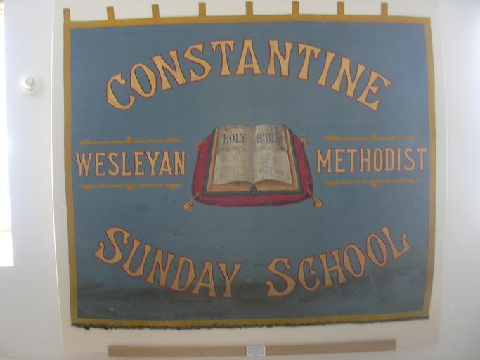 Keywords: DSCN0688MethodistBanner.JPG Constantine Heritage Centre Wesleyan Methodist Sunday School Banner Own 2007-07-30 Vernon39 Constantine Cornwall Methodism Sunday school Photographs by Vernon White