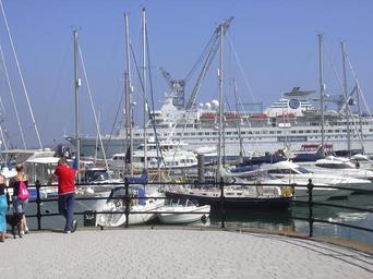 Keywords: DSCN1435Delphin.jpg MS Delphin the flagship of the Hansa Kreuzfahrten Fleet docked at Falmouth Own 2007-09-07 Vernon39 Falmouth harbour and docks Cornwall Delphin ship 1975 Photographs by Vernon White
