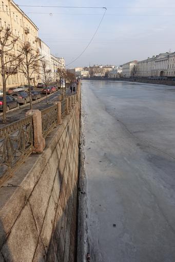 Keywords: ice water embankment channel buildings angles cars outdoor shore seaside landscape