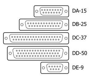 Keywords: DSubminiatures.svg Conectores de tamaño DA DB DC DD y DE The D-Subminiature connectors 2006-06-14 own assumed Mobius Pinouts of connectors D-Subminiature