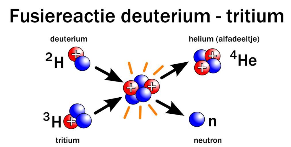 Keywords: DTFusion.svg en Schematic representation of deuterium-tritium nuclear fusion in Dutch nl Schematische weergave van kernfusiereactie tussen deuterium en tritium own Pbech 2008-11-16 DTFusion ca svg Nuclear fusion
