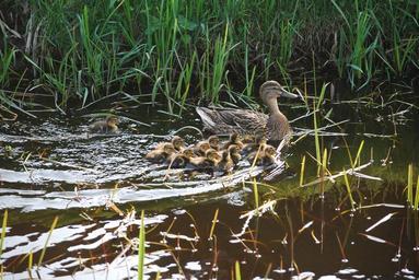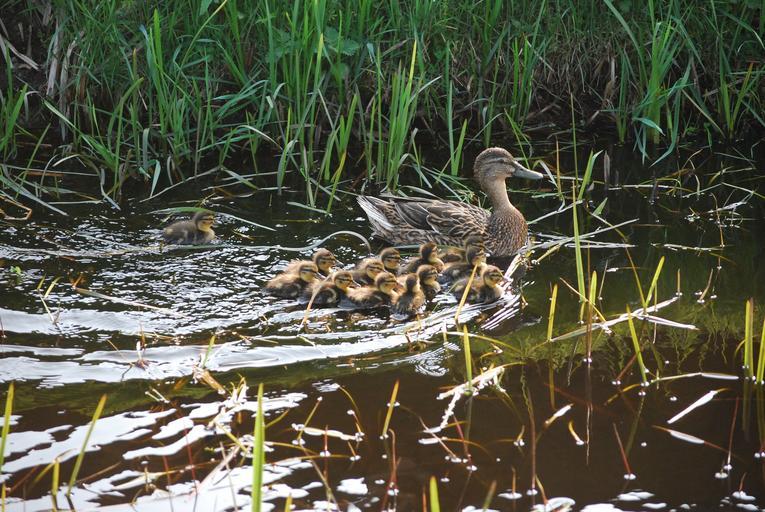 Keywords: duck chicks ducklings duck family water water bird animal plumage wild bird