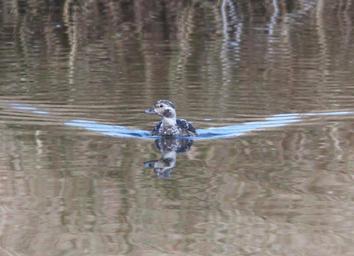 | Keywords: outdoor When first posted I had thought that this bird was an adult male. Doing more research, I now feel that it was a HY male in "supplemental 1" plumage or there-about. Primary reason being the amount of brown in the face and flanks and breast. I think that in an adult male in molt that the mix would be black and white, not brown and white. And although the bill of an adult male might be all gray at this time of year, I think that this is more likely of an imm bird. The following is copied from NA Birds: "Alternate I Plumage Prealternate I molt begins in Oct and continues to mid-Dec. Timing known only for male, assumed to be similar for female (Palmer 1976). Partial molt; Juvenal wing and Basic I tail and belly retained. Male. A less well-defined version of Definitive Alternate male plumage. Gray patch around eye more brown and less well defined, loral-patch dark brown (not black). Breast has smaller and less crisp black band than in Definitive Alternate. Back a mixture of black and white feathers; scapulars gray to white. Sides and flanks light gray, belly white." Robertson, Gregory J. and Jean-Pierre L. Savard. 2002. Long-tailed Duck (Clangula hyemalis), The Birds of North America Online (A. Poole, Ed.). Ithaca: Cornell Lab of Ornithology; Retrieved from the Birds of North America Online: bna.birds.cornell.edu/bna/species/651 doi:10.2173/bna.651 When first posted I had thought that this bird was an adult male. Doing more research, I now feel that it was a HY male in "supplemental 1" plumage or there-about. Primary reason being the amount of brown in the face and flanks and breast. I think that in an adult male in molt that the mix would be black and white, not brown and white. And although the bill of an adult male might be all gray at this time of year, I think that this is more likely of an imm bird. The following is copied from NA Birds: "Alternate I Plumage Prealternate I molt begins in Oct and continues to mid-Dec. Timing known only for male, assumed to be similar for female (Palmer 1976). Partial molt; Juvenal wing and Basic I tail and belly retained. Male. A less well-defined version of Definitive Alternate male plumage. Gray patch around eye more brown and less well defined, loral-patch dark brown (not black). Breast has smaller and less crisp black band than in Definitive Alternate. Back a mixture of black and white feathers; scapulars gray to white. Sides and flanks light gray, belly white." Robertson, Gregory J. and Jean-Pierre L. Savard. 2002. Long-tailed Duck (Clangula hyemalis), The Birds of North America Online (A. Poole, Ed.). Ithaca: Cornell Lab of Ornithology; Retrieved from the Birds of North America Online: bna.birds.cornell.edu/bna/species/651 doi:10.2173/bna.651 |