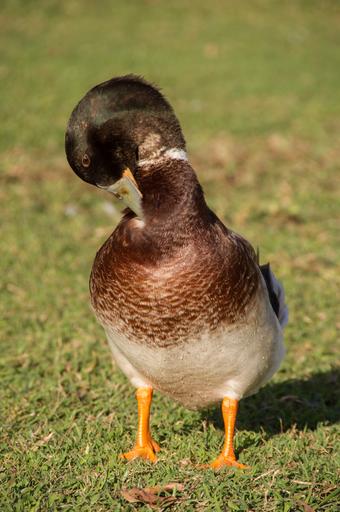 Keywords: duck preening feathers bird beak brown male wild queensland australia