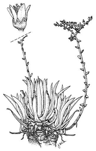 Keywords: DudleyaTraskiaeClarkFig7.png en Figure 7 from above-mentioned work botanical drawing of Dudleya traskiae Clark Ronilee A Halvorson William L 1989 Status of the endangered and rare plants on Santa Barbara Island Channel Islands National Park Endangered Plant Program Natural Heritage Division California Department of Fish and Game page 20 Clark Ronilee A Halvorson William L authors; artwork uncredited 1989 California Department of Fish and Game http //nrm dfg ca gov/documents/ContextDocs aspx cat Section6PlantReportshttp //www dfg ca gov/web/use aspx PD-USGov Dudleya |
