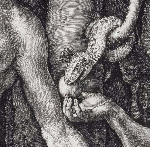 | Keywords: Duerers Paradiesschlange.jpg  Ausschnitt aus Albrecht Dürers Grafik Der Sündenfall Die Schlange überreicht Eva die verbotene Frucht Albrecht Dürer - The Fall of Man Adam and Eve - Google Art Project jpg 1504 creator Albrecht Dürer PD-art-100 Engraving of Adam and Eve by Dürer 1504 Snakes in art |