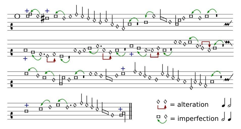 Keywords: Dufay Ave Regina cantus.svg en Cantus voice of Guillaume Dufay's Ave Regina c 1450 Ox Bod Can misc 213 f 62 after facsimile in W Apel The Notation of Polyphonic Music 1960 facs 26 With annotations of imperfection and alteration in mensural notation 2013-02-19 23 59 06 own Future Perfect at Sunrise cc-zero Uploaded with UploadWizard Guillaume Dufay Mensural notation |