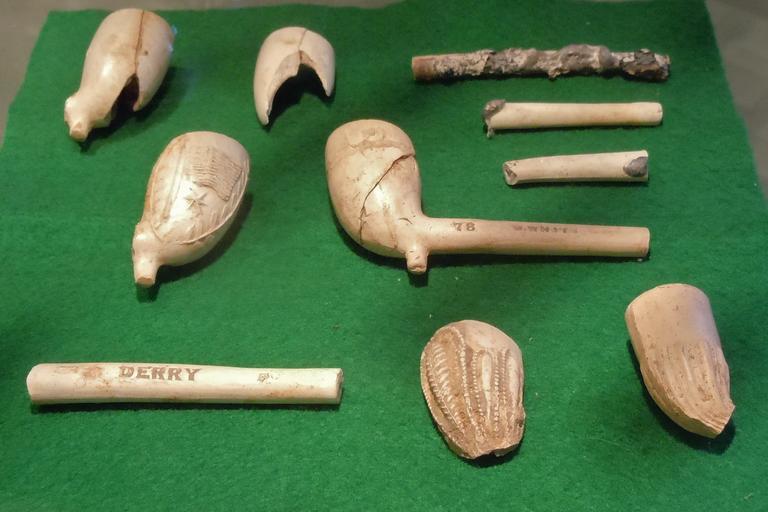 Keywords: Duffys Cut Pipes 1.jpg en Smoking pipe fragments excavated at Duffy's Cut Pennsylvania Some of the pipes clearly made in Ireland Museum location given 2011-04-15 own Smallbones 40 1 44 N 75 34 18 W cc-zero Uploaded with UploadWizard Duffy's Cut |