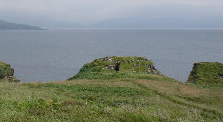 Keywords: Dun Ringill.jpg en Dun Ringill fort on the Isle of Skye Scotland The structure is approximately 4 meters high and 16 meters wide Loch Slapin is beyond The depressions on either side allow access to the sea The main door can be seen in the center of the structure Own Bryanmackinnon 2003-07 Dun Ringill Loch Slapin Coasts of Highland council area |