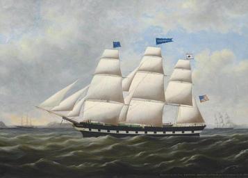 Keywords: Duncan Mac Farlane - The American Merchantman ‚Trumbull‘ of New York.jpg The American Merchantman šTrumbull ˜ of New York 1859 oil on canvas cm 64 8 91 4 <small> reflist other sources say 1818 “1865 or 1840-1866</small> object history credit line The Trumbull was built in 1850 ship rig 856 tons owned by Post Smith Co and based in New York She was still sailing in 1865 accession number 1 http //www arcadja com/auctions/de/private/mcfarlane_duncan/kunstwerken/111552/0/ Christie's via ARCADJA auction results<br/> christies online 5627733 7856 49 London 21 November 2012 page no more available PD-old-100 DEFAULTSORT MacFarlane Duncan; Trumbull; Christies 2012 Duncan MacFarlane painter Trumbull ship 1850 19th-century sailing ships in paintings 1859 paintings |
